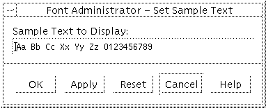 Note - Because the default sample text is a user preference stored in the user's home directory, it cannot be set for the root user which has no home directory. The root user can type in the sample text display area to view other sample text.