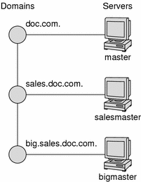 To begin, you assign one master server to each domain in the hierarchy.The following figure shows one possible assignment.