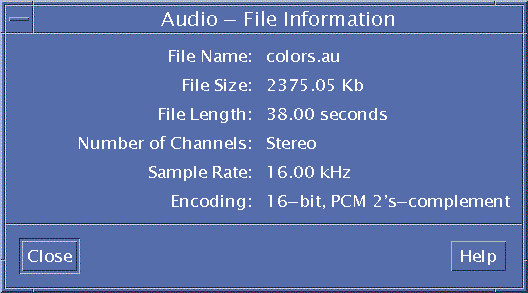 Help -- provides you with assistance in all areas of Audio Control. Refer to the following illustration for an example showing the Help pull-down menu.