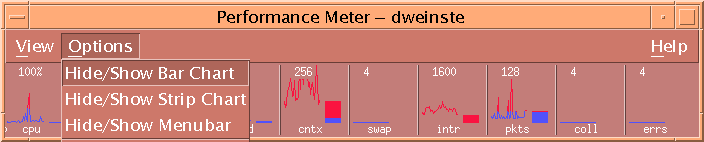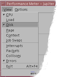 You can monitor performance on your workstation (local) or on another workstation (remote). The View menu lists several performance parameters that you can display for the host you are monitoring.