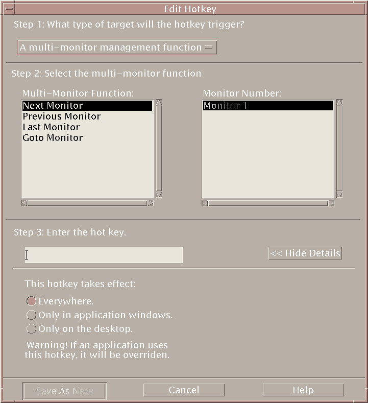 If you are creating a new hotkey, the first option in the Multi-Monitor Function listbox is already selected.