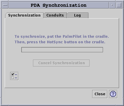 The PDA Sync application is available as an icon on the Common Desktop Environment (CDE) desktop. It is activated when you first log in. When you exit the application, restart it manually in order to perform synchronization again.