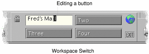 The workspace switch contains the buttons you use to change from one workspace to another, and other controls. You can rename a workspace by clicking its button and editing the name text.