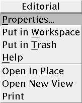 Each object in File Manager has a pop-up menu. The File Manager window itself has a pop-up menu viewable when the pointer is placed in a location in the view window outside the boundaries of the individual file or folder objects.
