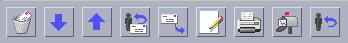 By default, the following commands appear as icons: Delete; Next; Previous; Reply, Include Message; Forward; New Message; Print One; Open Mailbox; and Reply.