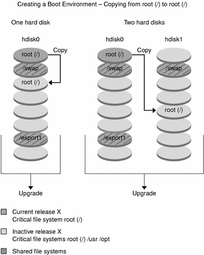 Figure 30-1 Creating an Inactive Boot Environment -- Copying root (/) to root (/)