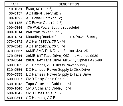 Sun3/II - Parts_Breakdown/Option - 65MB Rack Mountable Disk and Tape Subsystem