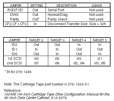 Volume I: Tape150MB 1/4" Tape DriveSun-3/470Sun-4/330/370/390/470/490 SS630MP / SS670MP / SS690MP / SC2000 Options 539 / 565 / 660 370-1205 [Archive 2150S, Half-Height, Black Bezel] 370-1206 [Archive 2150S, Full-Height, Black Bezel] 370-1218 [Archive 2150S, Half-Height, Custom Bezel] 370-1246 [Archive 2150S, Full-Height, Lt. Grey Bezel] | ||||||||||||