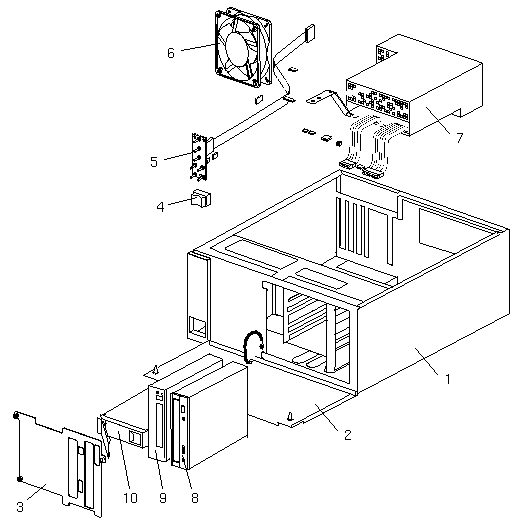 Chassis Assembly with 2 Removable Media Bays Chassis PCI Filler Panel Disk Drive Bay Assembly (1.0" or 1.6" height) SCSI Cable and Backplane Assembly Top Cover Front Panel Assembly Fan Filter Ground Strap Drive Cover Power Switch LED PCB/Cable Assembly LED Module LED Cable 12V Fan Assembly |