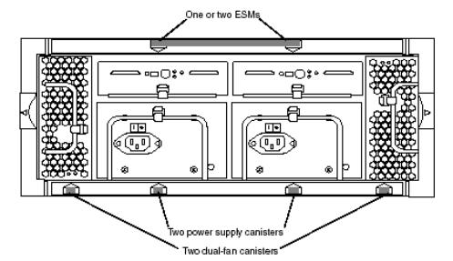 If two are used, ESM0 controls the left bank of drives and ESM1 controls the right bank of disks.