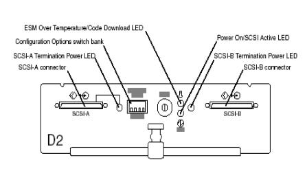 SCSI A/B connectors: Two hosts can connect to each ESM. External termination is not required.