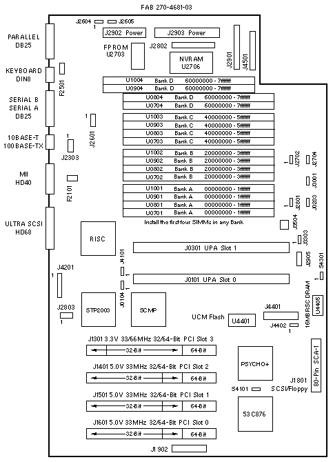 PCI Bus B shares the address/data bus with onboard Audio, Ethernet, Flash, Floppy, Keyboard, Mouse, NVRAM, Parallel, SCSI, and Serial devices.