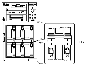 Disk LEDsThe disk LEDs are visible from the front of the system when the bottom door is open, as shown in the following figure.