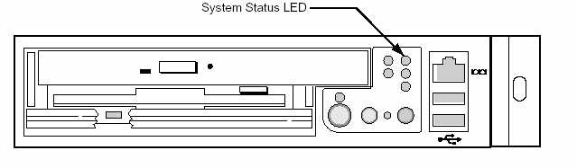 • System Status LED: Indicates functional status of the server board. Glows green when all systems are operating normally. Glows amber when one or more systems are in a fault status. This LED mirrors the function of the system status LED on the front panel.