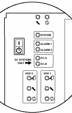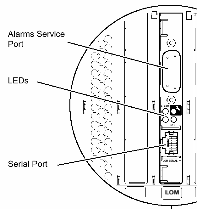 LOMlite2 LEDsThe LOMlite2 status LEDs, which mirror the alarm status and power LEDs on the front panel, are located on the rear of the system, between the LOMlite2 DB-15 alarms relay port and RJ45 serial port. | ||||||||||||||||||||||||||||||||||||||||||||||||||||||||||||||||||||||||||||||||||||||||||||||||||||||||||||||||||||||||||||||||||||||||