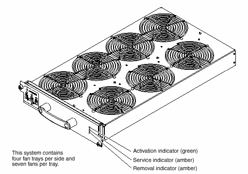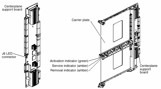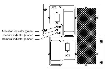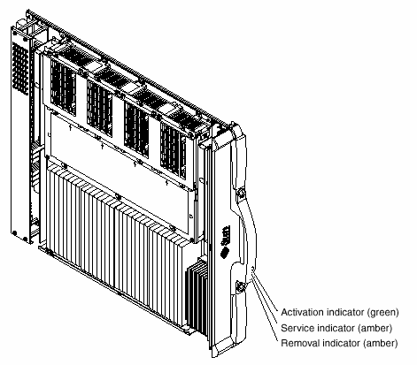Sun Fire 15K LEDsHardware IndicatorsThe LED indicators provide current status information about the component directly associated with the indicator array. Indicators are arranged in a straight line, horizontal or vertical, with the green LED on the left or top. Component LED StatusClick on the Component links for LED locations and more information. Failure of the service LED to transition from ON to OFF within 60 seconds after insertion indicates a power-status control fault (except for CPU Board and Power Supply LEDs).