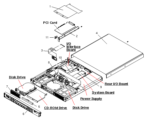 Netra t1 System FRUs (AC - Model 105) |