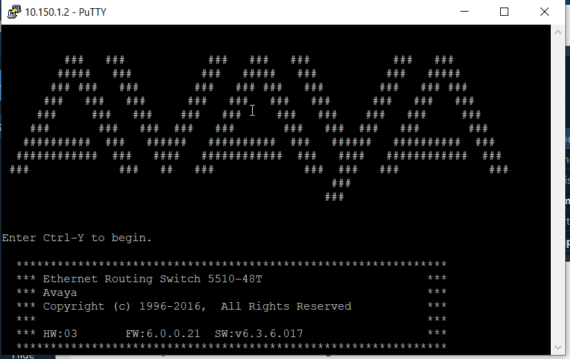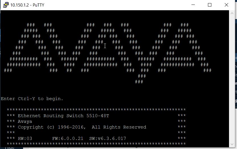 !SYSINFO: sysDescr: Ethernet Routing Switch 5510-48T