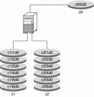 Throughout the Solaris Volume Manager Administration Guide, the examples generally relate to a single storage configuration, whenever that is possible. This chapter explains what that configuration is and provides information about this broad storage scenario for the rest of the book.