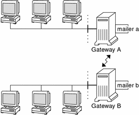 The simplest mail gateway to set up is one that connects two networks that use the same protocol or mailer. This system handles mail with an address for which sendmail cannot find a recipient in your domain. If a mail gateway exists, sendmail uses it for sending and receiving mail outside your domain.