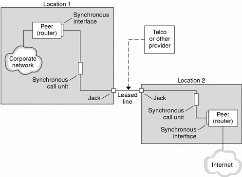 CSU/DSU synchronous digital unit on each peer, which connects the synchronous port to the leased line.