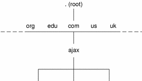 The following figure shows the position of the ajax.com domain in the DNS namespace on the Internet.