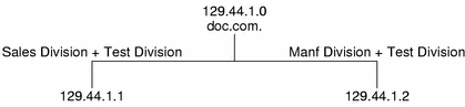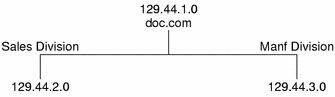 Instead of addressing mail or other network communications to 129.44.1.0, they could be addressed to doc. Instead of addressing them to 192.68.2.0 or 192.68.3.0, they could be addressed to sales.doc or manf.doc.