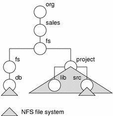NFS is Sun's distributed file system. The files associated with an object will generally reside on one or more remote NFS file servers. In the simplest case, the namespace identifier fs corresponds to the root of an exported NFS file system, as shown in Figure 25-3.