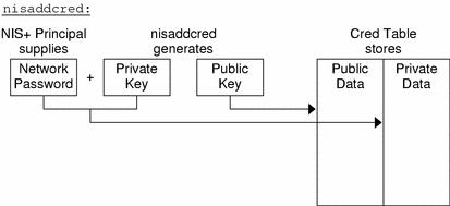 Figure 12-3 How nisaddcred Creates a Principal's Keys