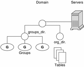 Technically, you can arrange directories, tables, and groups into any structure that you like. However, NIS+ directories, tables, and groups in a namespace are normally arranged into configurations called domains. Domains are designed to support separate portions of the namespace. For instance, one domain may support the Sales Division of a company, while another may support the Manufacturing Division.
