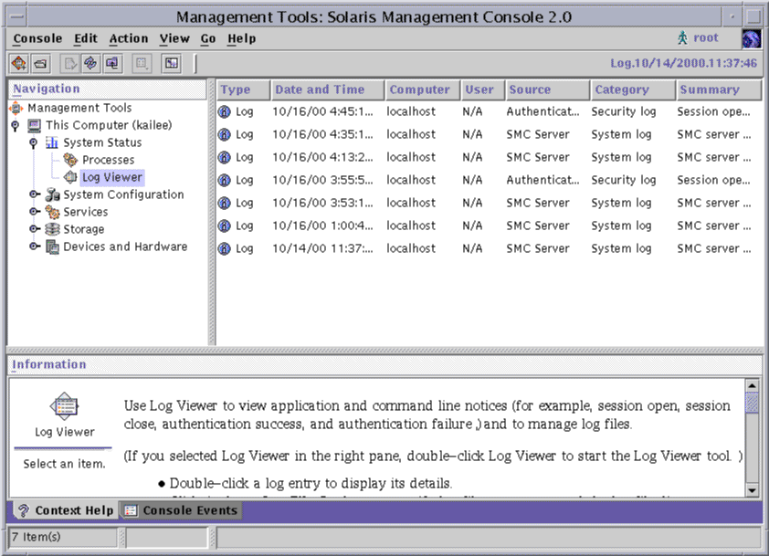 Figure 5-1 Solaris Management Console Application, Log Viewer Selected