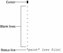 If paint already exists, vi opens the existing file. If this is a new file, vi creates it. For the purposes of this example, paint should be a new file.
