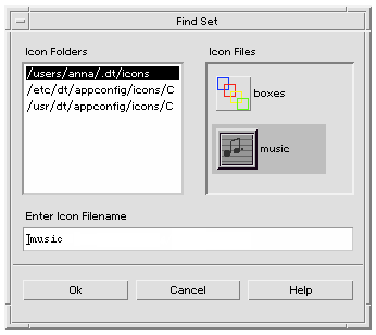 In the Find Set dialog box's Icon Folders list, double-click the folder path containing the icon.