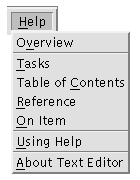 About - Displays version and copyright information about the application (in this case, Text Editor)
