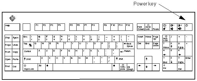 Figure 23-7 Example of Power Key Location on Sun Type 5 and Type 6 Keyboards