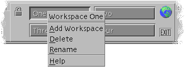 The workspace button pop-up menu includes the following items: