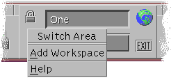 Use the workspace buttons to change workspaces. Each button has its own menu.