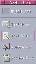 Use the Applications subpanel to post text and voice notes on the workspace, to run Text Editor, and to open Application Manager.