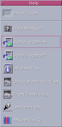 The Help subpanel enables you to access AnswerBook2 documentation, the master help volume (Help Manager), and other online help volumes such as Front Panel Help.