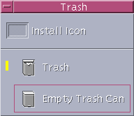 ![]() | Empty Trash Can | Shreds (removes) contents of Trash Can window | Moves dropped files to Trash Can window |