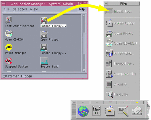 Figure 8-5 Installing an Application (Action Icon) in the Front Panel