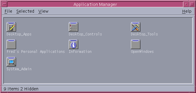 The Application Manager window is a special File Manager view of the Application Manager in your file system. It looks and behaves somewhat like a File Manager window, but it is populated each time you log in, and you cannot copy new applications and files directly into it.