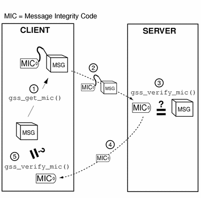 The initiator compares the received MIC against the original message with gss_verify_mic().