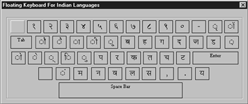 To switch to Hindi input mode, either press Compose h i, or select Hindi from the input mode selection window. For more information on accessing the input mode selection window, see Figure 5-1. To switch back to English/European input mode type Control and spacebar together, or select English/European input mode from the input mode selection window by clicking in the status area.