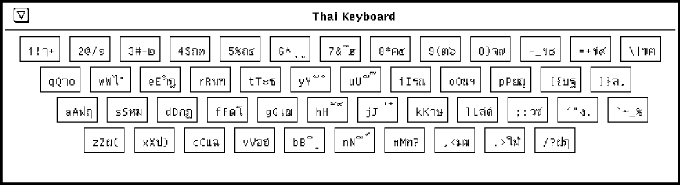 To switch to Thai input mode, either press Compose t t, or select Thai, from the input mode selection window. For information on accessing the input mode selection window, see Figure 5-1.