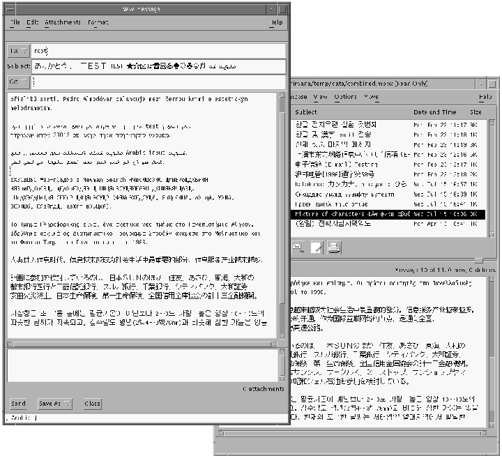 This support supports users to view virtually any kind of email encoded in various character sets from any region of the world in a single instance of DtMail. DtMail decodes received email by looking at the MIME charset and content transfer encoding provided with the email. Windows-125x MIME charsets are supported.