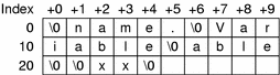 The first byte, which is index zero, holds a null character. Likewise, a string table's last byte holds a null character, ensuring null termination for all strings. A string whose index is zero specifies either no name or a null name, depending on the context.