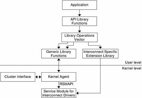 A Kernel Agent (KA) pseudo device driver (/usr/kernel/drv/rsm) that interfaces with the memory interconnect driver through the RSMAPI interface on behalf of the user library