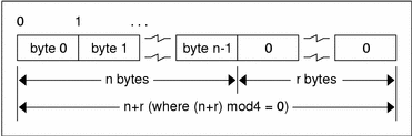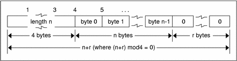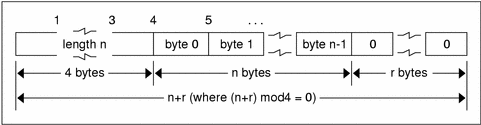 The n bytes are followed by enough (0 to 3) residual zero bytes r to make the total byte count of the opaque object a multiple of four.