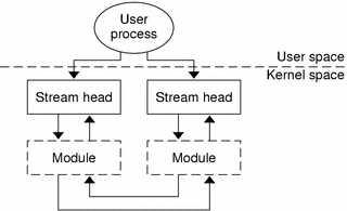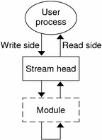 STREAMS modules can be added to a pipe with I_PUSH ioctl(2). A module can be pushed onto one or both ends of the pipe (see Figure 6-2). However, if a module is pushed onto one end of the pipe, that module cannot be popped from the other end.